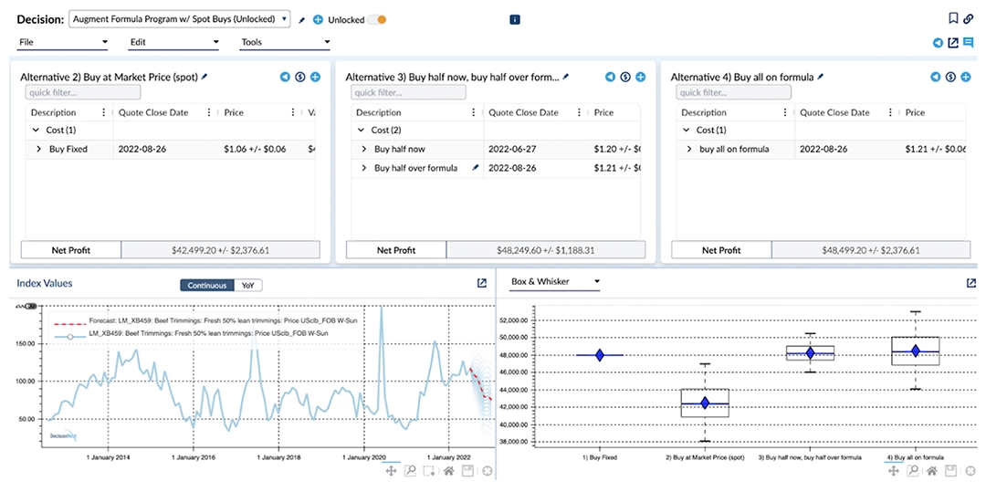 Example: A regional beef processor avoided $2.3M in losses by modeling spot versus formula alternatives during a volatile six‑month period. The team now tests multiple scenarios before every major commitment.